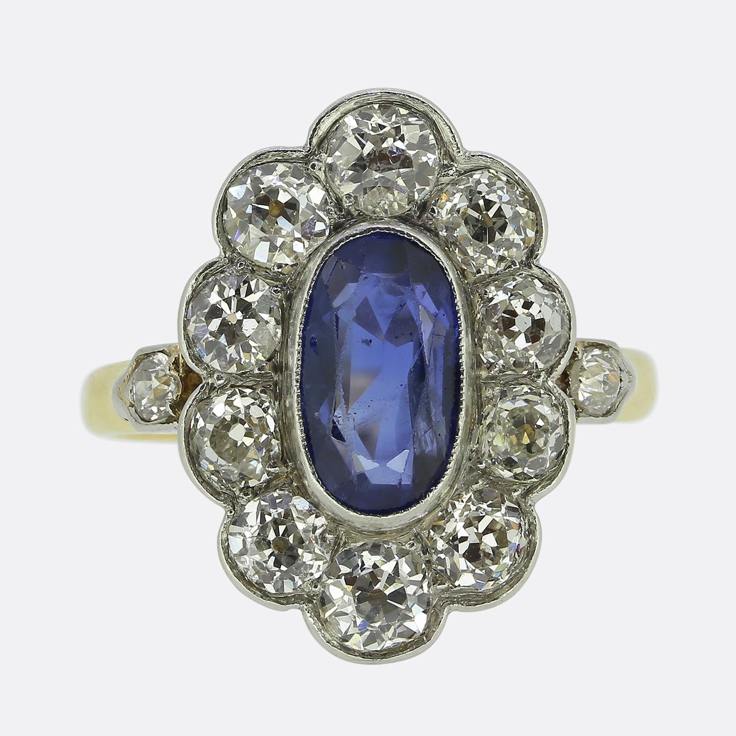 Edwardian 0.95 Carat Burmese Sapphire and Diamond Cluster Ring
