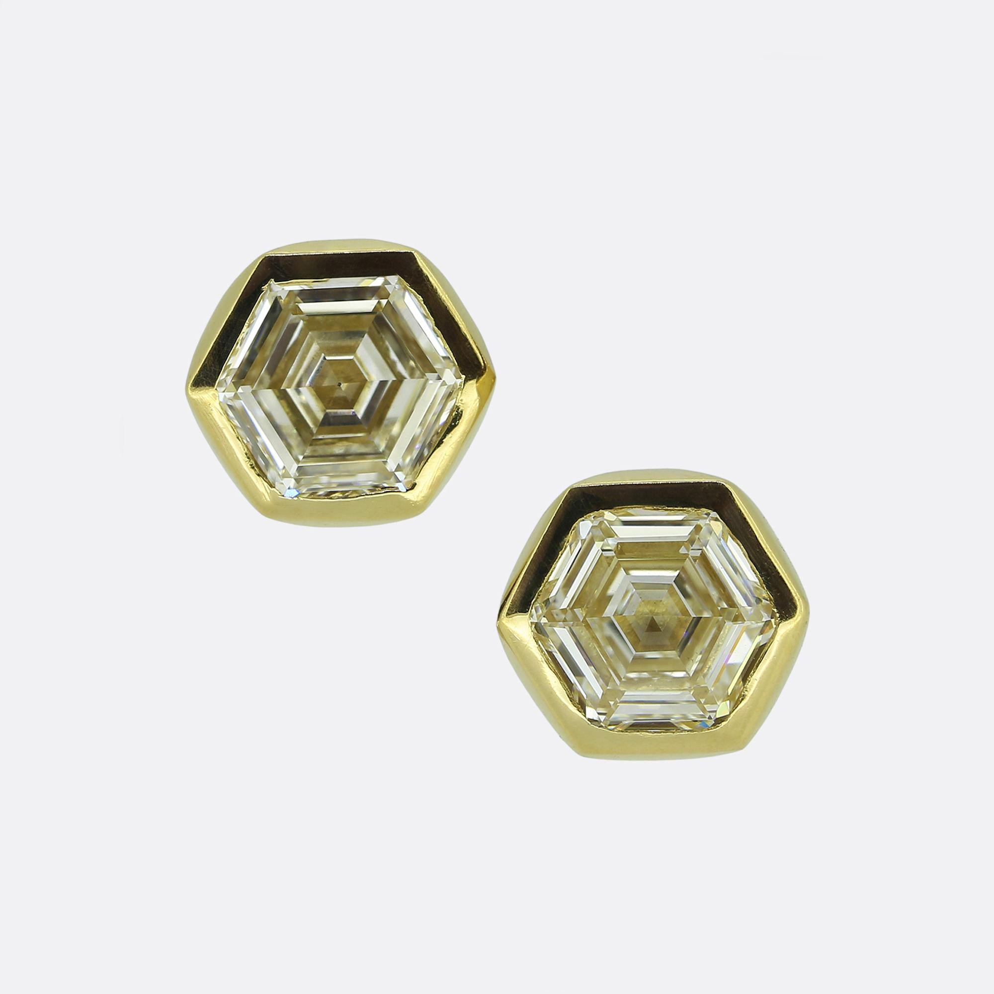 2.00 Carat Hexagonal-Cut Diamond Stud Earrings