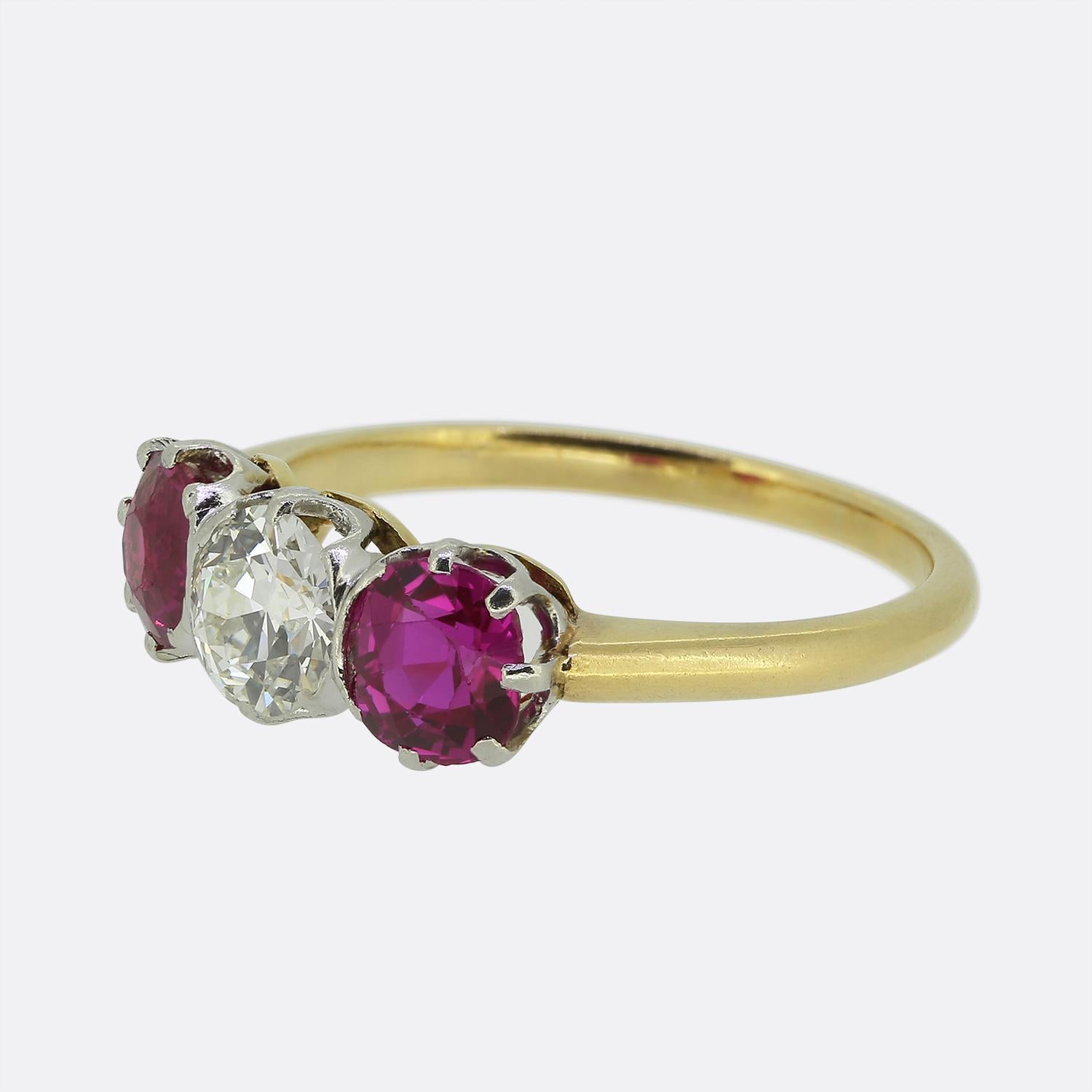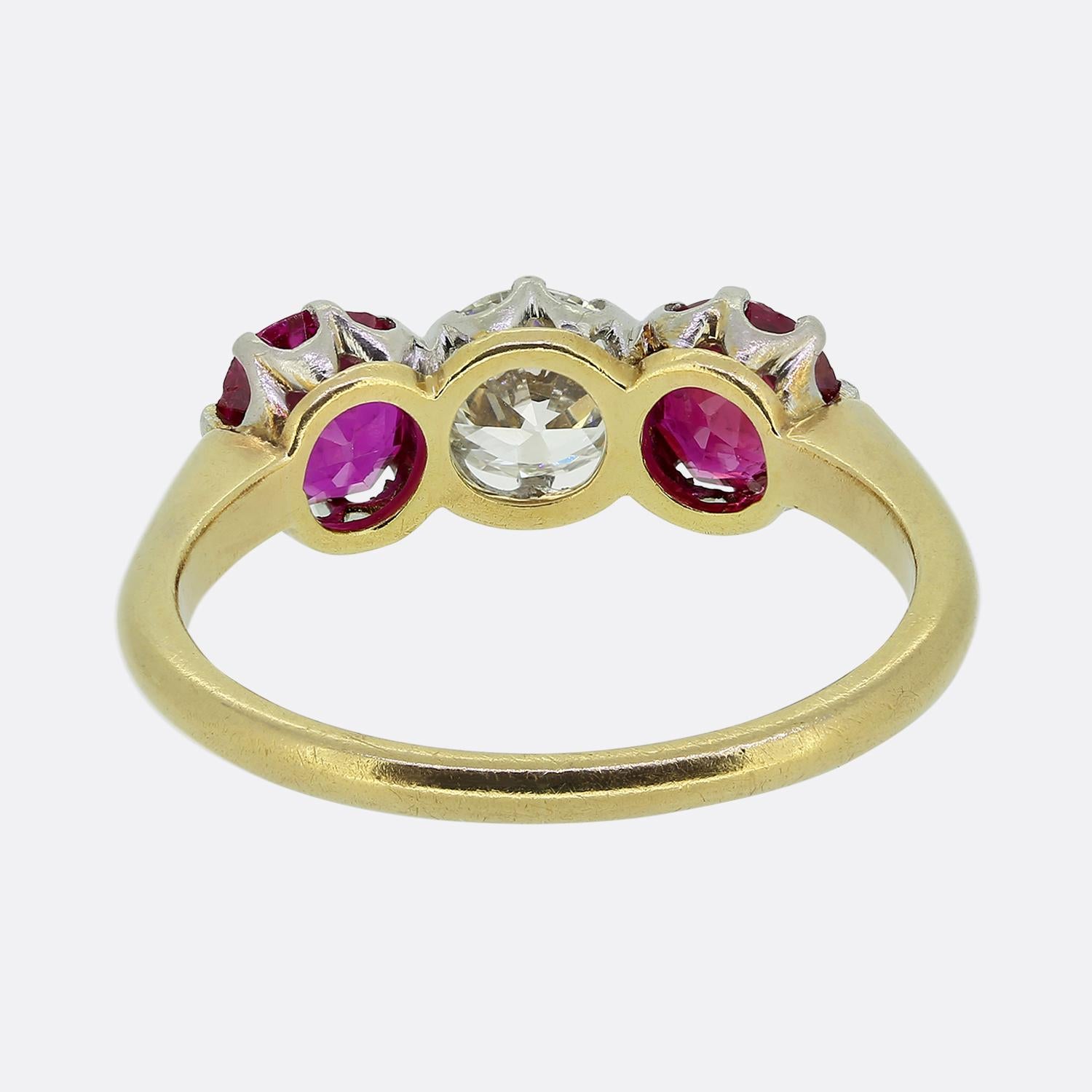 Antique 0.65 Carat Diamond and Ruby Three-Stone Ring