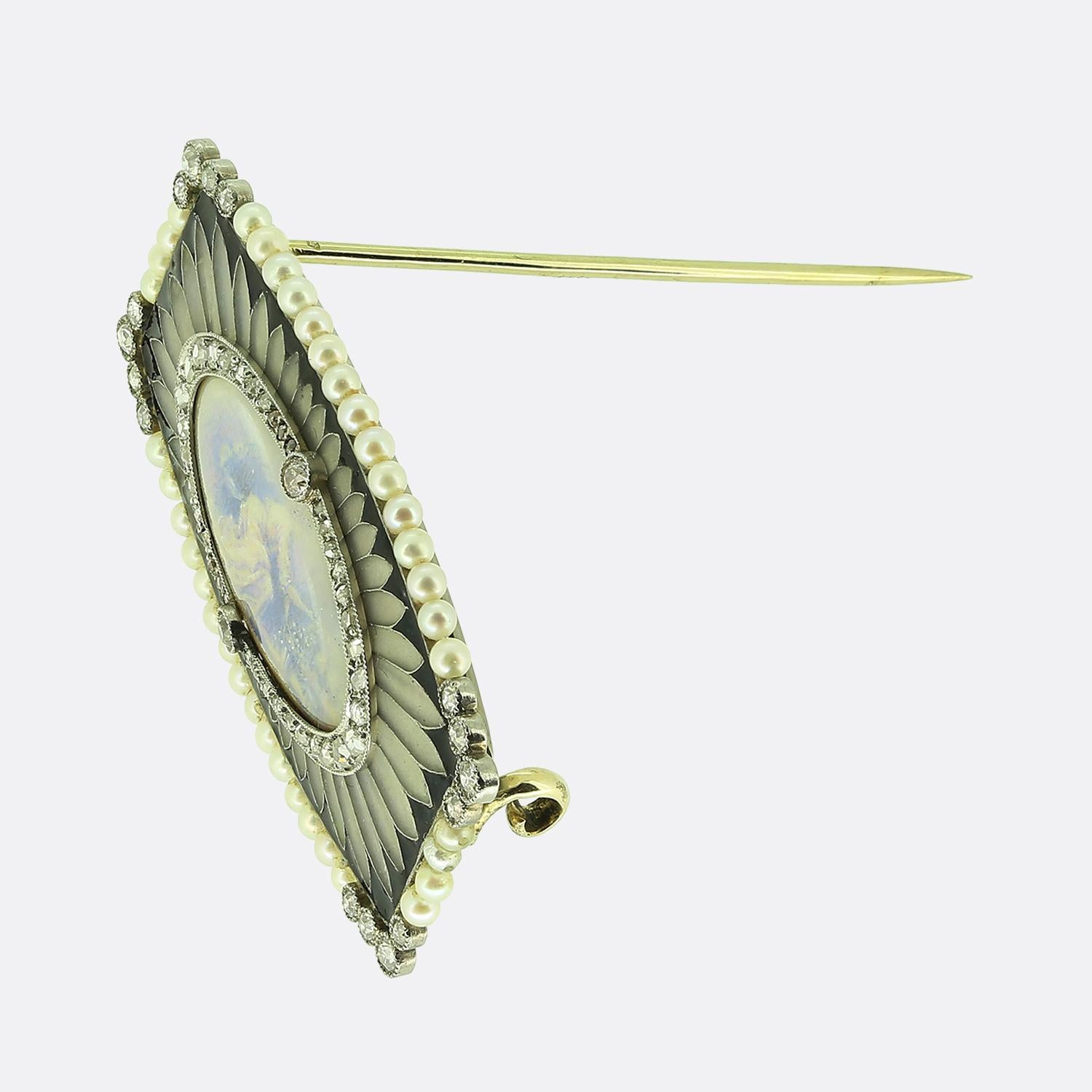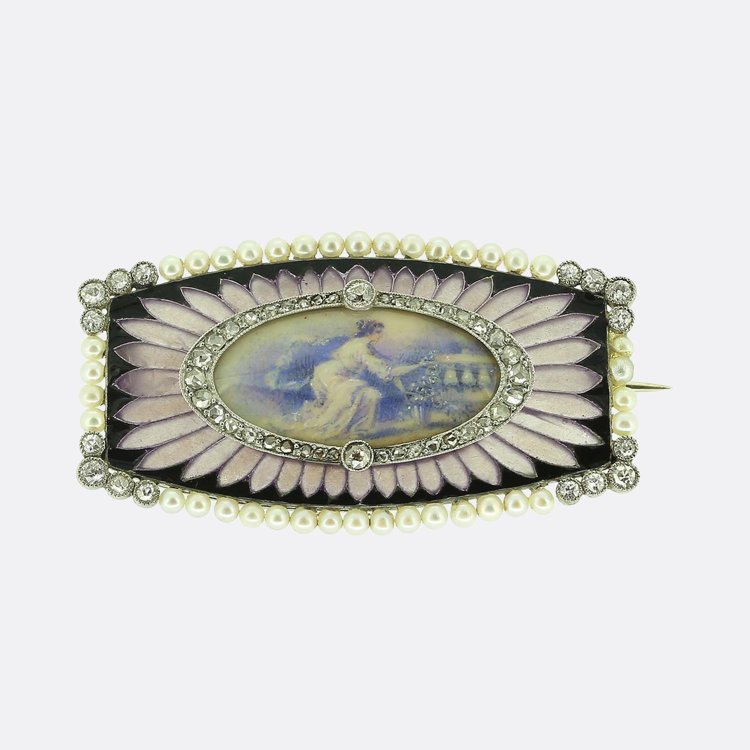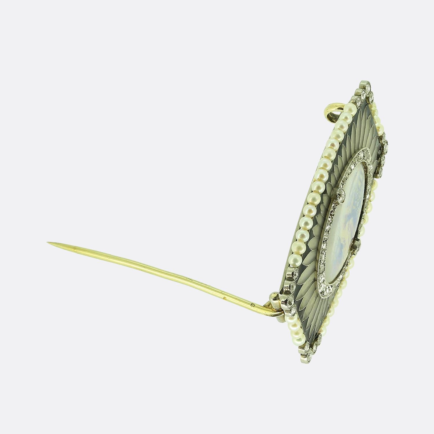 Belle Époque Pearl and Diamond Miniature Portrait Brooch