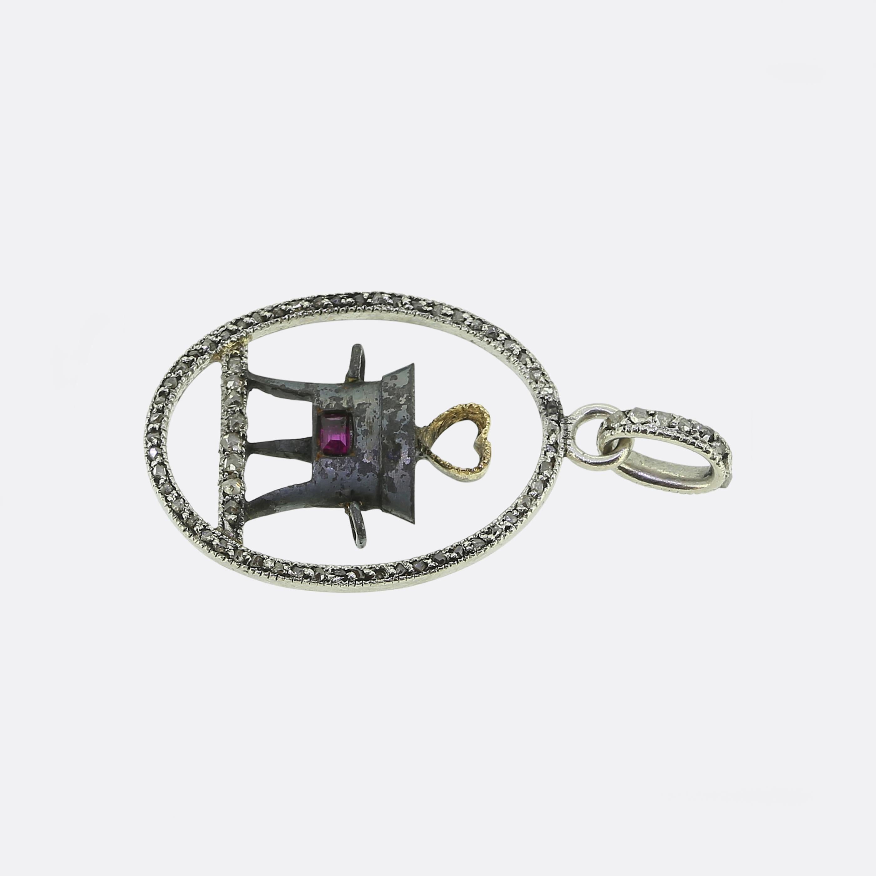 Cartier Ruby and Diamond Cauldron Pendant
