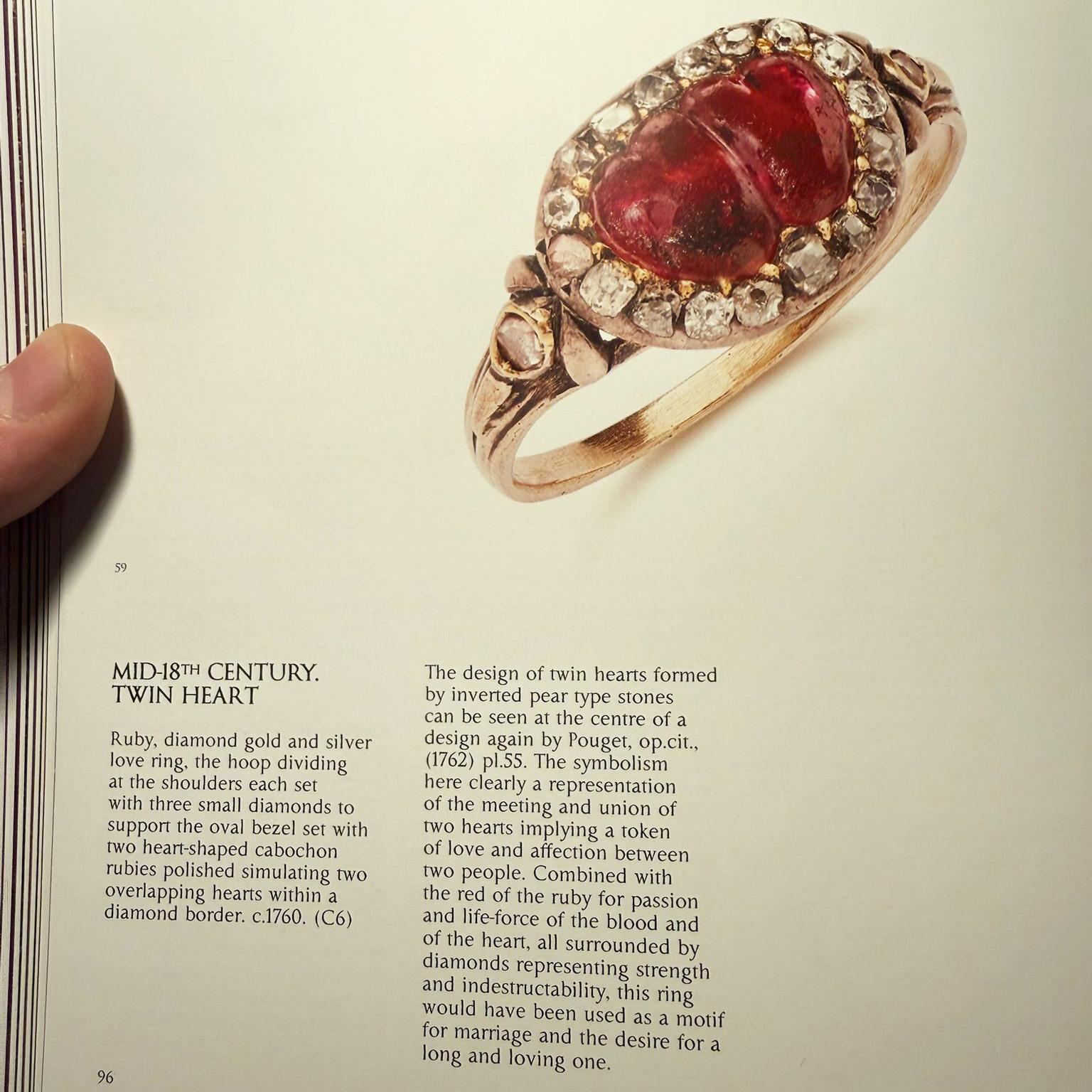 Georgian Double Cabochon Ruby Heart and Diamond Ring