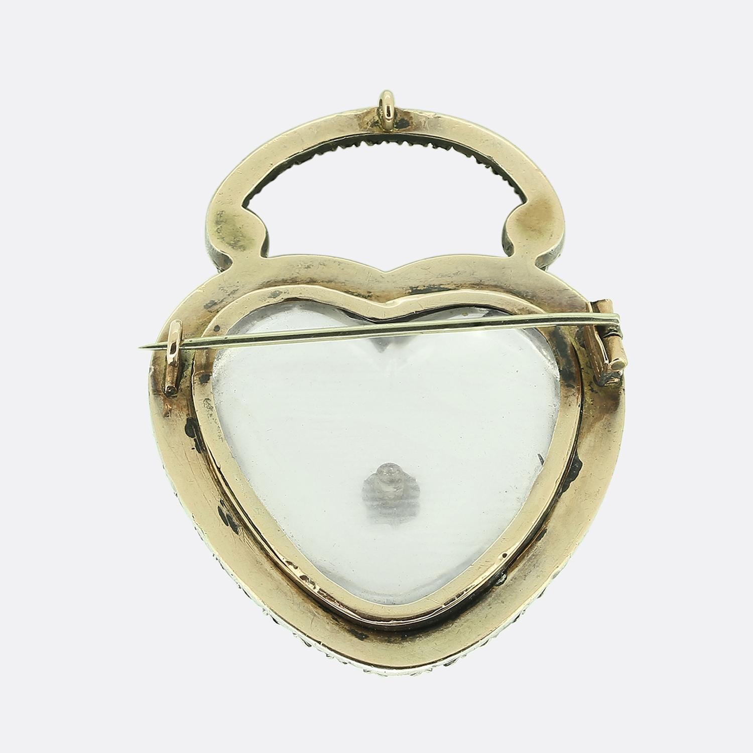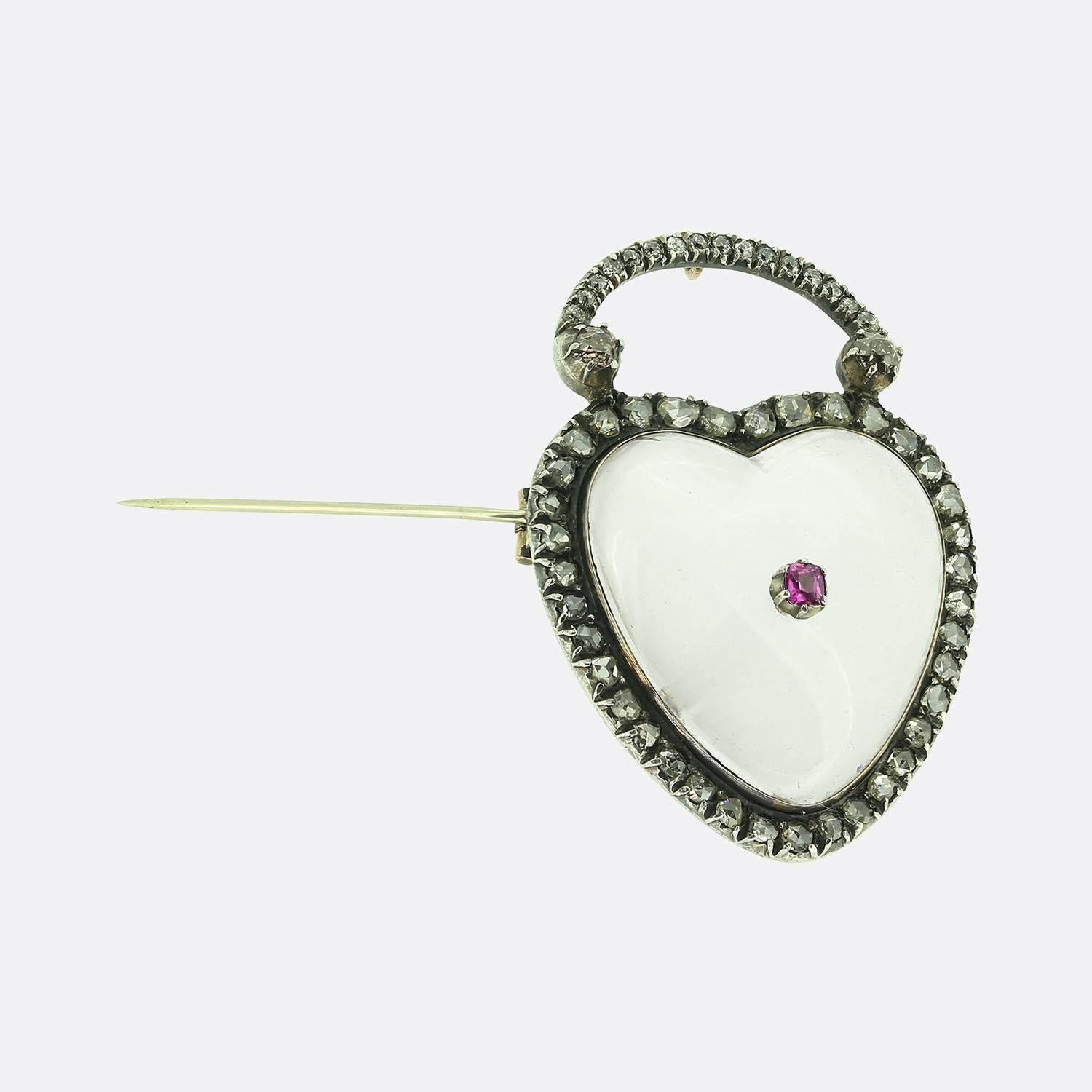 Georgian Ruby Diamond and Rock Crystal Heart Pendant Brooch